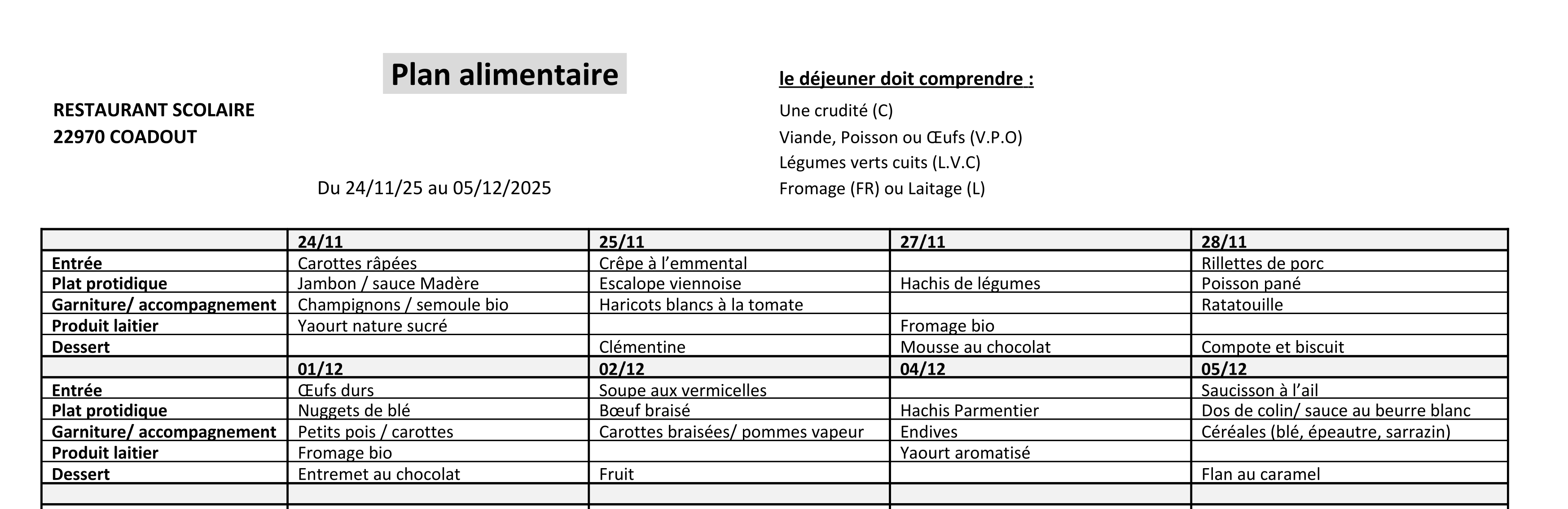 Les menus ne sont plus fixes, mais variables d'une semaine à l'autre.